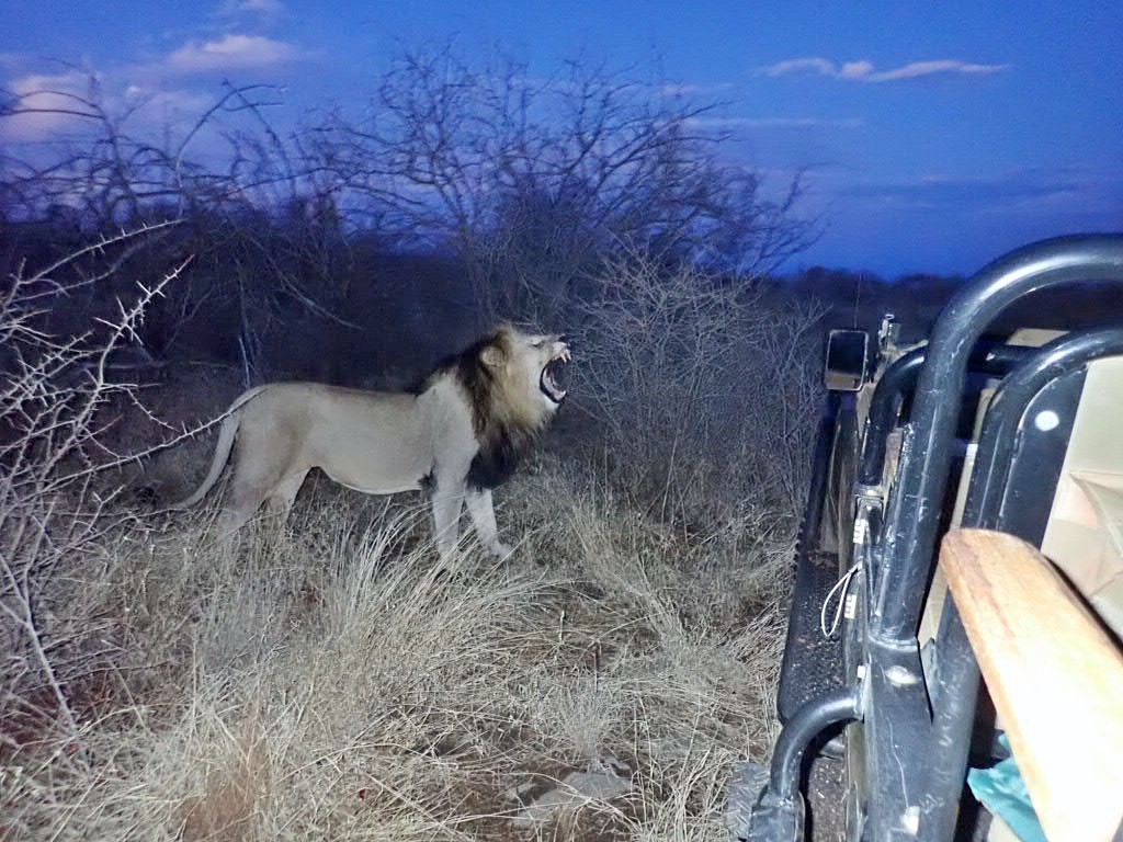Now the photo above is why we all go to Africa. Just a moment that is as vivid in my mind as when it happened. It may look like the lion is roaring but there wasn’t a lot of noise. I think he really just wanted to let us know we were close enough and it was time to go home.
