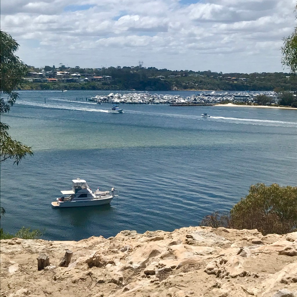 At Rocky Bay there is deep water which means you get a lot of party boats dropping anchor to let people jump off into the deep, protected waters of the bay. There’s also a really interesting clifftop walk with beautiful views of the bay and river traffic coming and going and also a very cool tree that is perched on the cliff and grown sideways, making a great cubby spot for kids. There’s also an old tunnel from the days of the soap factory and an even older cave from the days of the wagyl.