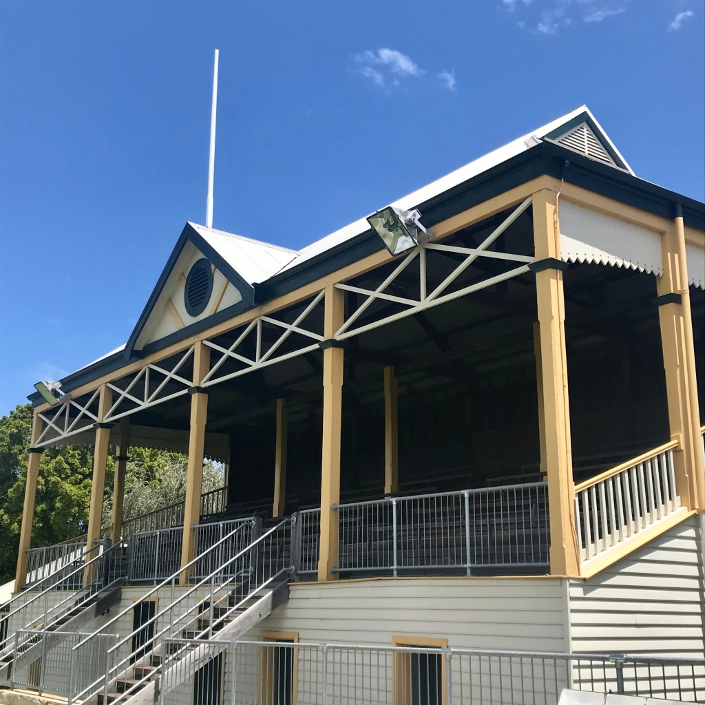 It doesn’t get much quieter than Gilbert Fraser Reserve on the banks of the Swan and where a little grandstand, in fact so small it has been referred to as a pavilion, but it’s spectator architecture at its best. Sit up in the stand and you can watch cricket and beyond the match just over the boundary rope are the lapping waters of the river with sometimes bigger lappings as the big boats chug past.