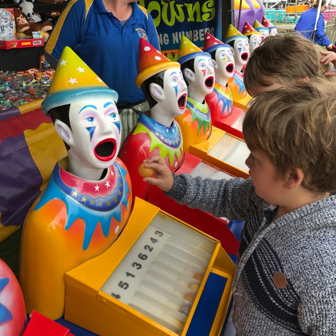 Enjoy the spruikers and their calls to get your participation to drop a ping pong ball down a clowns mouth. Calls like;