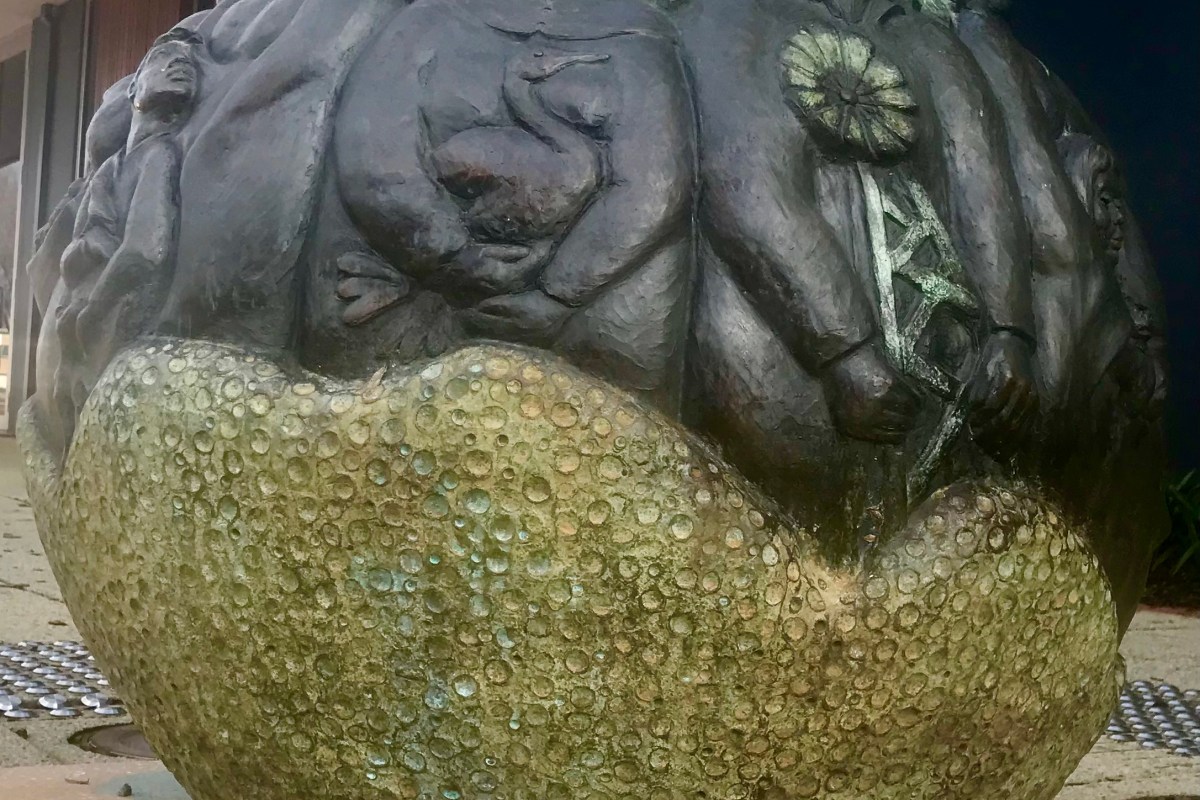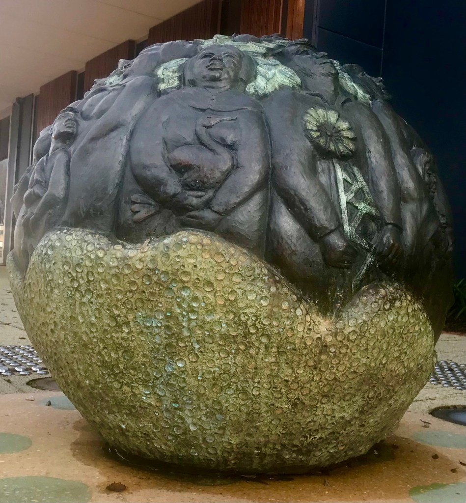 Firstly, the Peeled Orange, that we’ve already mentioned, is a tip of the hat to the historical European settlement days when orange groves were seen throughout the area. The sculpture shows different people in the segments of the orange, including the farmer, his wife and the labourers who worked in the orchards. My second favourite is just a couple of big strides down the street where you’ll find a possum, turtle and lizard peeking from underneath a manhole cover and about to make a run for it along the footpath. It’s about the hope of the community for nature to live within the community.