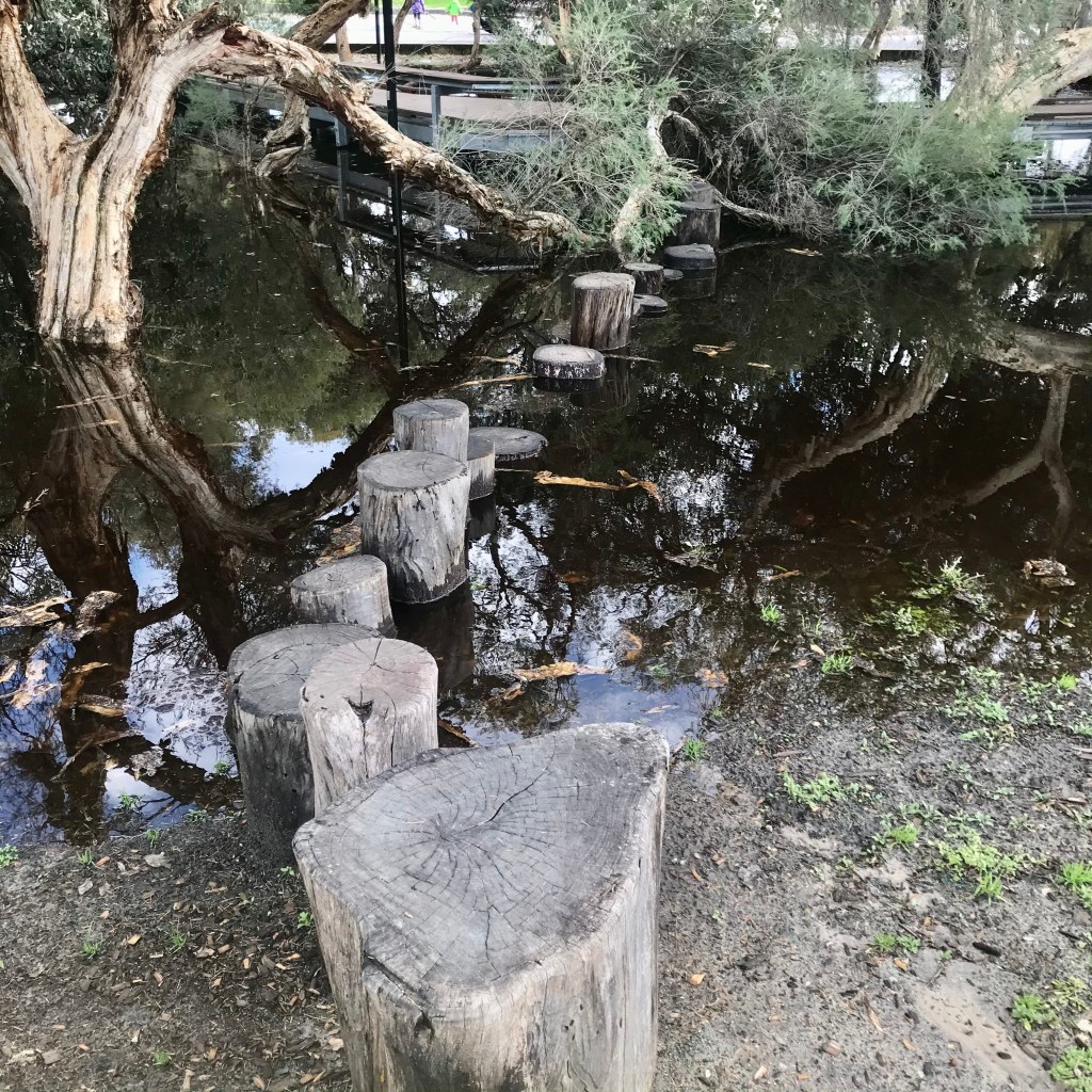 The Mills Park Nature Play Space is the only play space in Perth where if a child, parent or carer, falls off the log path you’ll fall into wetlands. It’s a remarkable space that has a slightly elevated pathway over a wetland that is full of paperbark trees. With flying foxes, opportunities to make cubbies and lots of ways to get really dirty it’s a park with a real sense of adventure and activity.